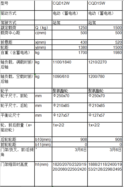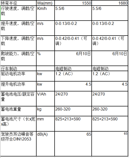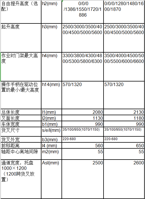 ■ 內(nèi)置充電器、全自由提升、貨叉?zhèn)纫?,可作為客戶的選配,門架起升高度為2.5米至5.6米,承載能力由1噸到1.25噸;